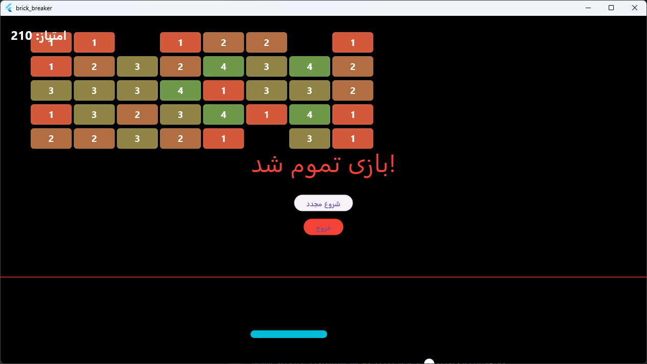 وقتی همه آجرها نابود شوند، پیام “برنده شدی! 🎉” نمایش داده میشود.